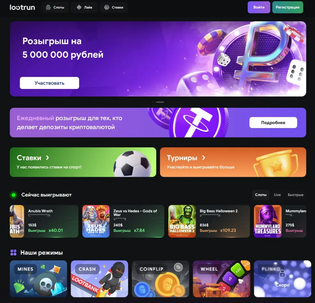 Сам бренд уже стал известен в сети благодаря сочетанию простого интерфейса, удобных способов оплаты и большого ассортимента игр. На этой странице мы собрали всю актуальную информацию о Lootrun, а также ссылки на основные разделы — зеркало, регистрацию, бонусы и отзывы.